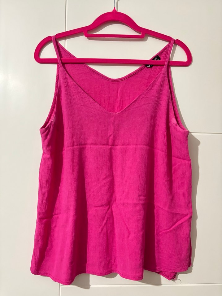 V yaka, pembe keten kumaştan, bol kesim kadın atlet. Günlük kullanıma uygun, zahmetsiz şıklık sunar.Marka temsili