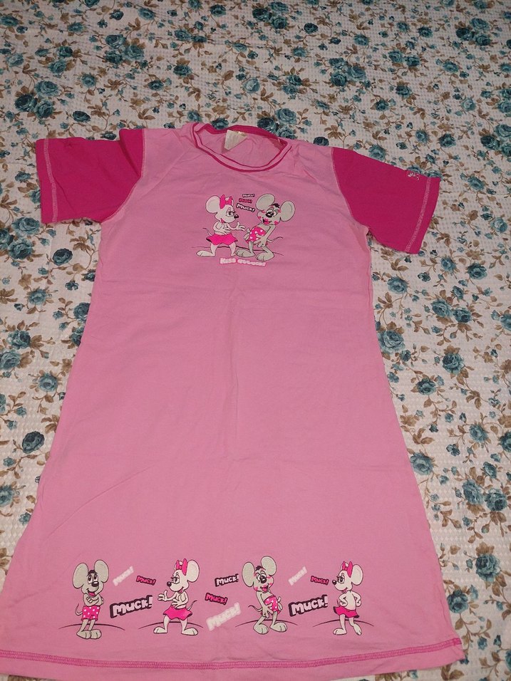 Kadınlar için uzun, pembe renkli, kısa kollu ve bol kesim pijama elbisesidir. Göğüs ve etek kısmında neşeli fare baskıları bulunur. Pastel pembe tonu, rahat bir görünüm sunar.
