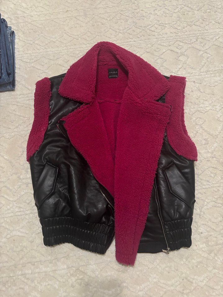 Kadın Pembe Kürklü Deri Yelek