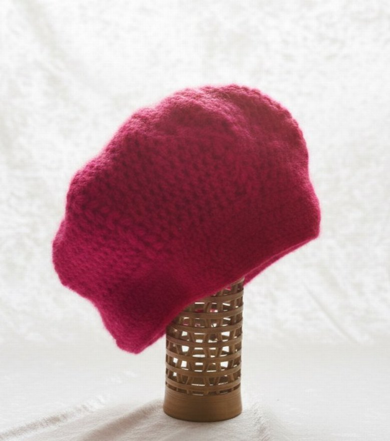 Kadınlar için örgü, canlı pembe renkte, yumuşak ve rahat dokulu bere. Sade ve temel tarzda, hafif karşı kültür havası taşıyor.
