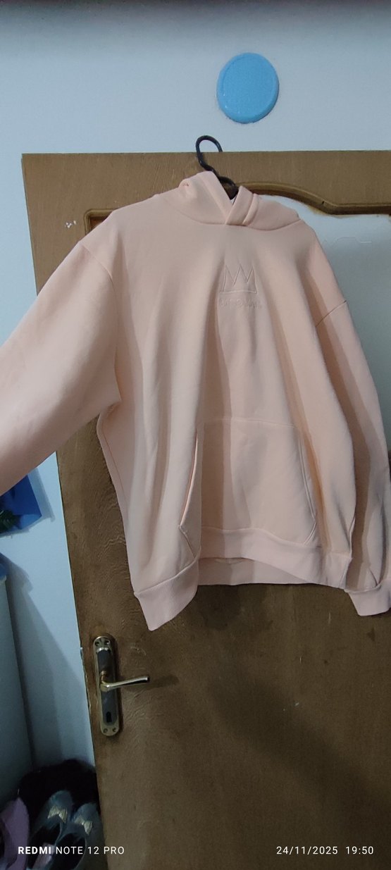 Kadınlar için pembe pastel renkte, oversize kesim, uzun kollu ve yuvarlak yakalı sweatshirt. Yumuşak ve sıcak kumaştan, desen içermeyen sade tasarım, rahat ve şık bir günlük stil sunar. arkası desenli kapüşonlu polarlı sıfır hiç kullanılmadı