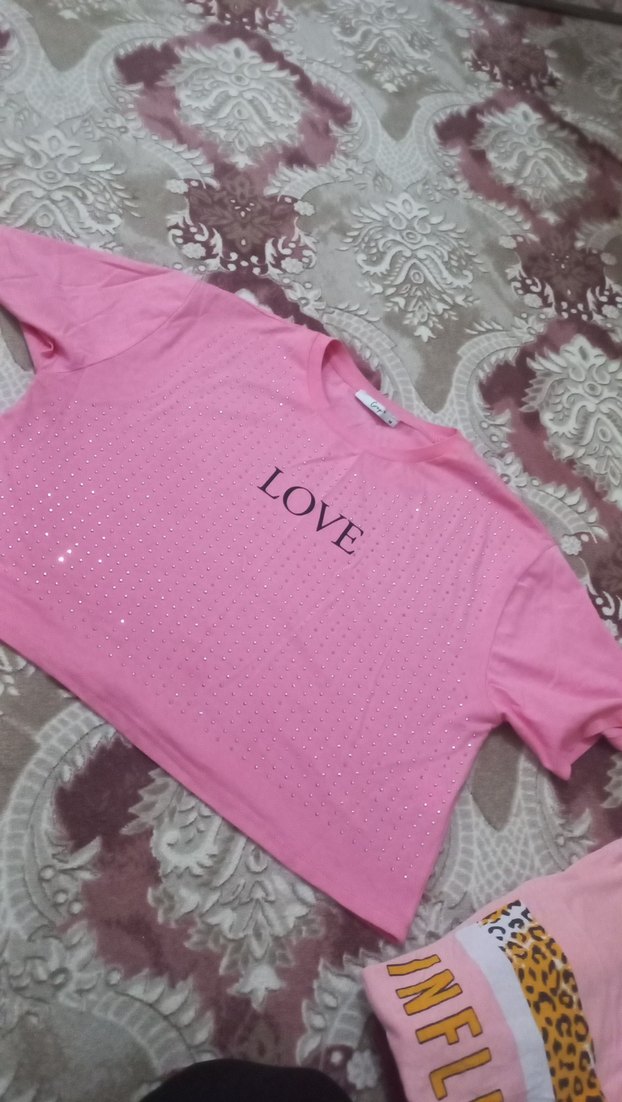 kadin Pembe Payetli Tişört