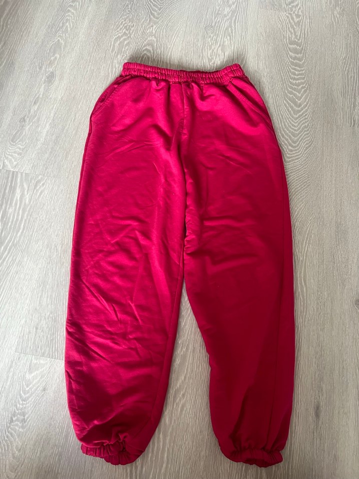 Parlak pembe renkte, bol kesim ve lastikli bel ile bilek detayına sahip yumuşak ve sıcak kumaştan eşofman altı. Spor ve günlük kullanım için uygundur.