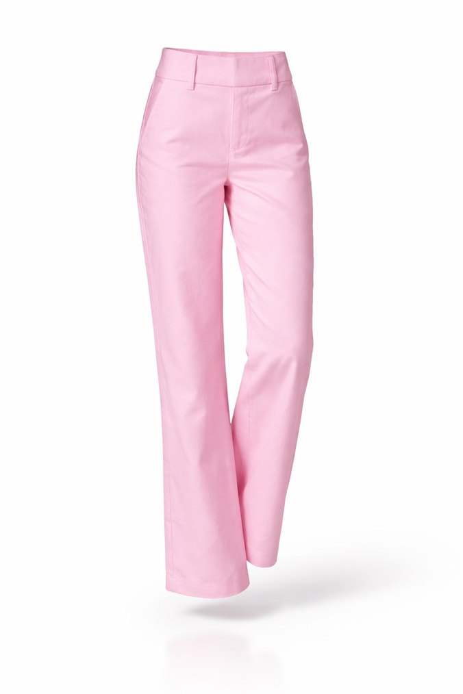 Kadınlara özel pembe saten kumaştan, normal boy midi paça pantolon. İş ortamına uygun, desen içermeyen rahat kesim ve şık normcore tarzı.