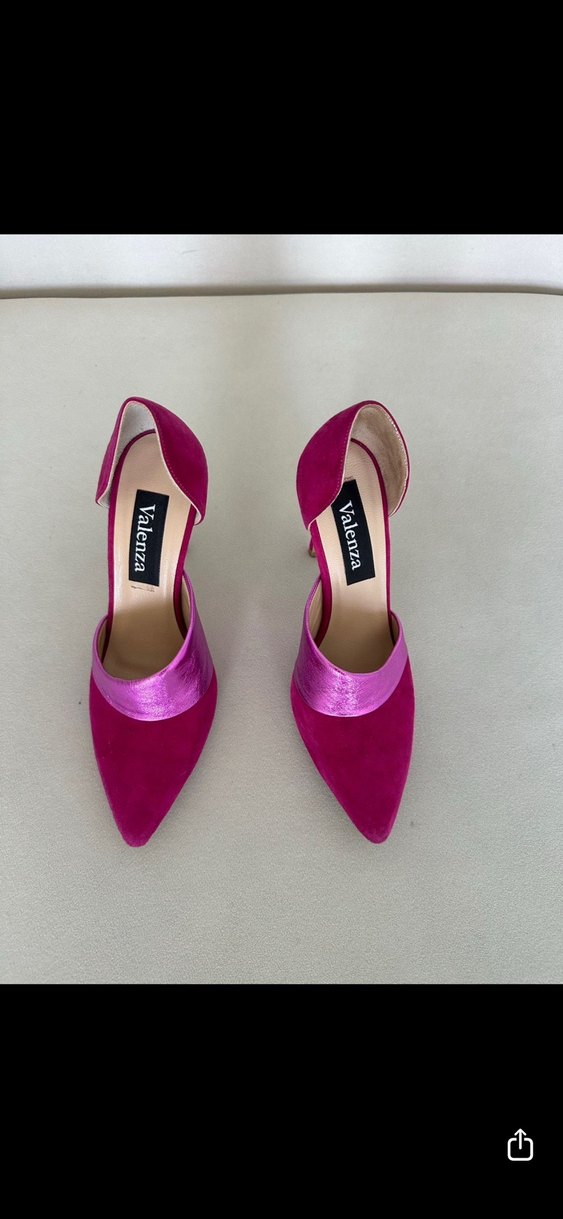 Parlak bantlı ve pembe süet hakiki deri stiletto topuklu ayakkabı, cesur ve göz alıcı bir tasarıma sahip. sıfır ayakkabı altındaki naylonu bile duruyor fuar ürünüdür altındaki jelatini çıkartabilirsiniz, koruma amaçlıdır. Ürün elimde tek fiyatı makul tuttum hakiki deri bir ayakkabı için çok iyi bir fiyat rahat bir parçadır topuğunun ince olduğuna bakmayın koşabilirsiniz bile bu ayakkabıyla.