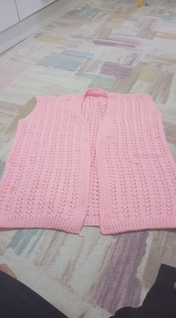 Pastel pembe renkte, kolsuz ve örme dokuda kadın hırkasıdır. Rahat ve sade normcore tarzındadır.