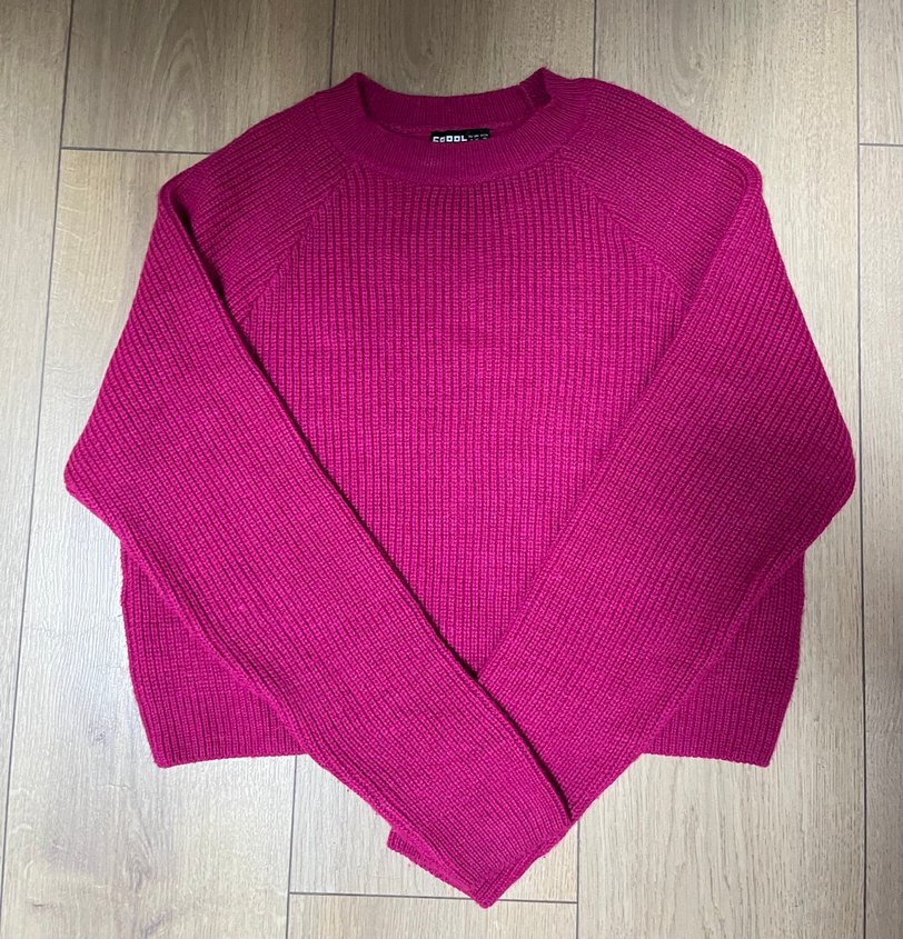 Kadınlar için pembe renkli, triko örme dokulu, yuvarlak yakalı ve uzun kollu kazak. Rahat kesimli, desen içermeyen, gündelik kullanıma uygun midi uzunluğunda kazak.