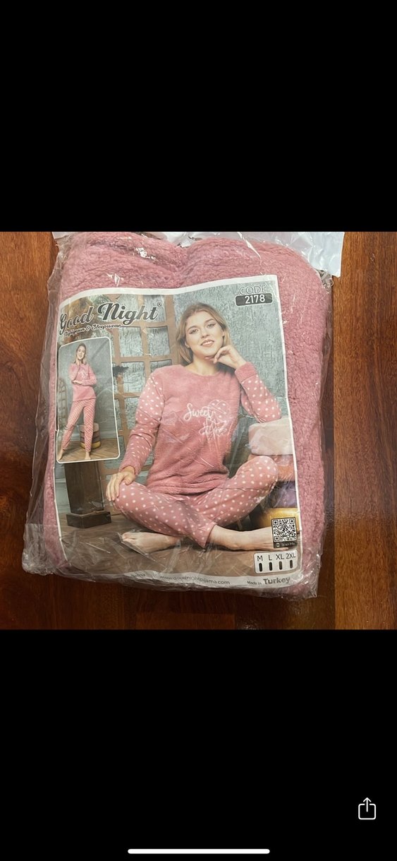 Bu bol kesim kadın pijama takımı, uzun kollu ve pastel pembe renkte, baskılı desene sahiptir. Rahat ve bohem tarzıyla konforlu geceler sunar. Yeni defosuz ve hiç kullanmadı ürün. M-L bedeni uyumdur.
