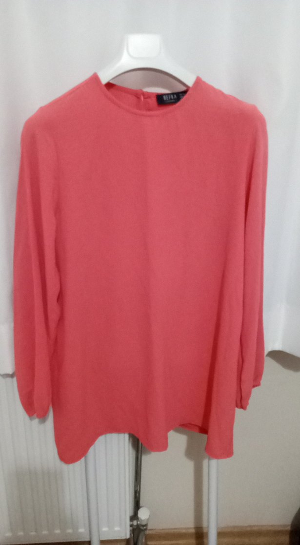 Kadınlar için uzun kollu, yuvarlak yaka ve bol kesim pastel pembe saten bluz. Minimalist, desensiz ve günlük sokak stili için uygun.