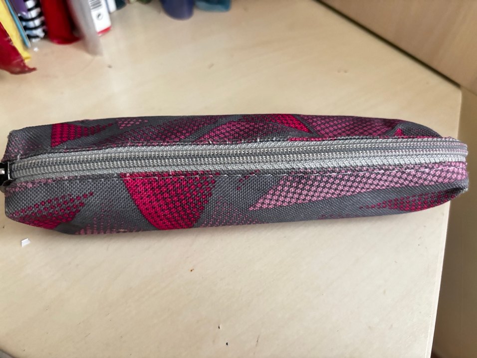 Kadınlar için fermuarlı, pembe yılan desenli sentetik kumaştan yapılmış makyaj çantası. Günlük kullanım için uygun, trend athleisure tarzında.