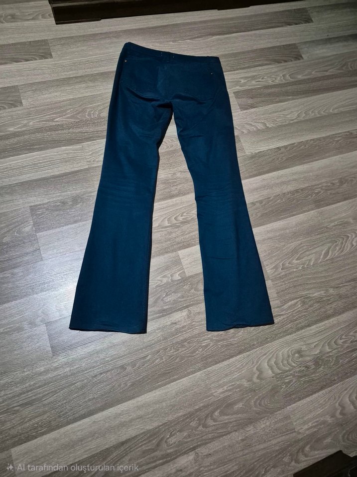 Petrol yeşili renkte, düğmeli, normal boy regular fit denim pantolon. Günlük kullanıma uygun, casual tarzda rahat bir model.