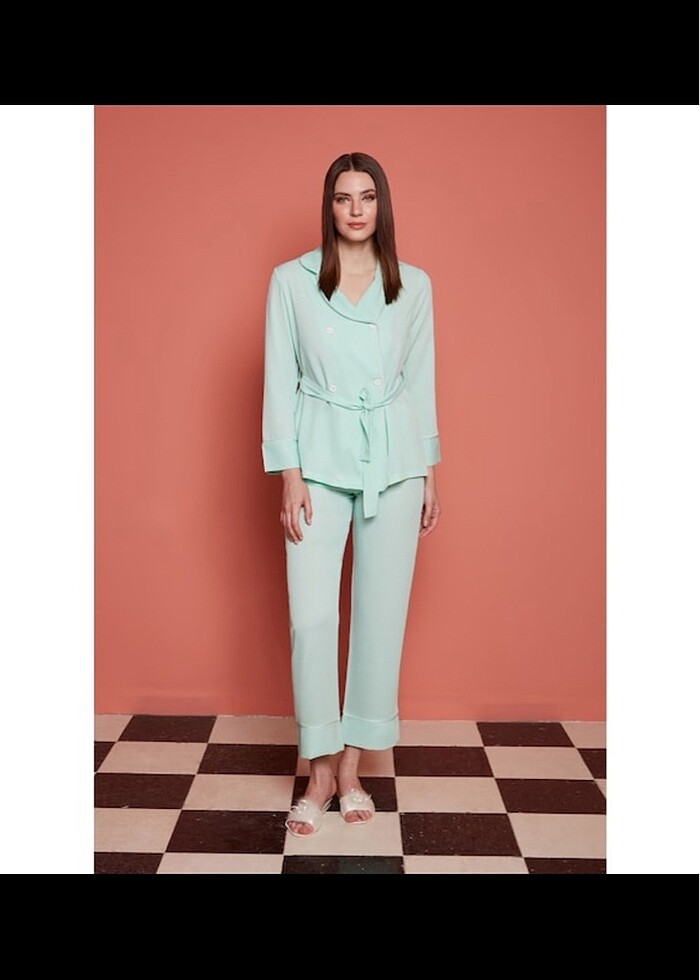 Su yeşili xl beden gecelik takımı. Hamile giyimine uygundur. Ben doğumdan sonra bir defa hastanede giydim.
