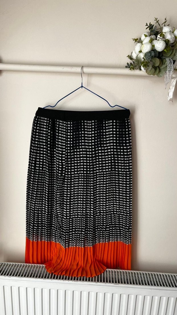 Kadın Pileli Uzun Etek Siyah-Turuncu