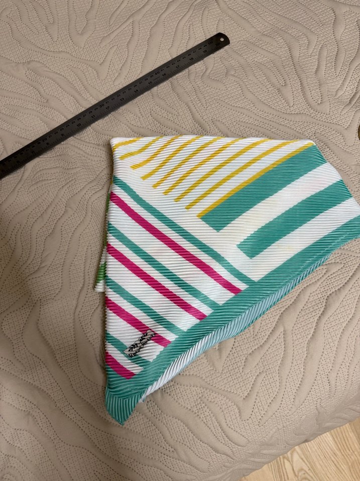 Kadınlar için pilili, sentetik kumaştan yapılmış, pastel tonlarda çok renkli çizgili bohem ve Paris tarzı fular.