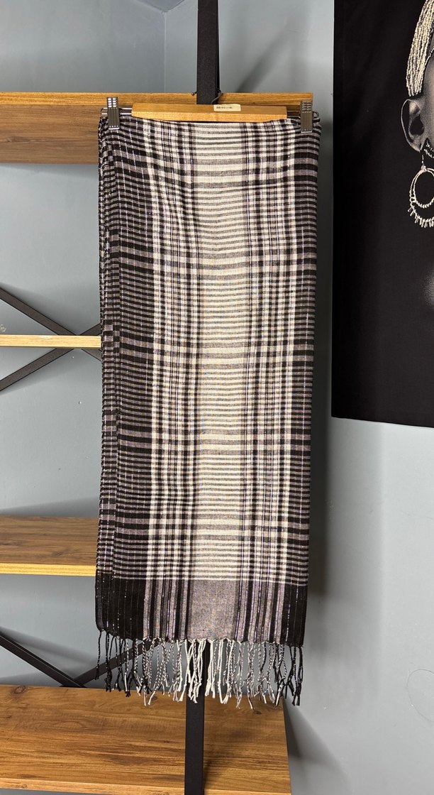 Kadınlar için ve gri tonlarda, pilili tasarıma sahip sentetik yumuşak kumaştan yapılmış şal. Püsküllü kenarlarıyla bohem ve retro tarzlara uygun, rahat ve çağdaş bir model.