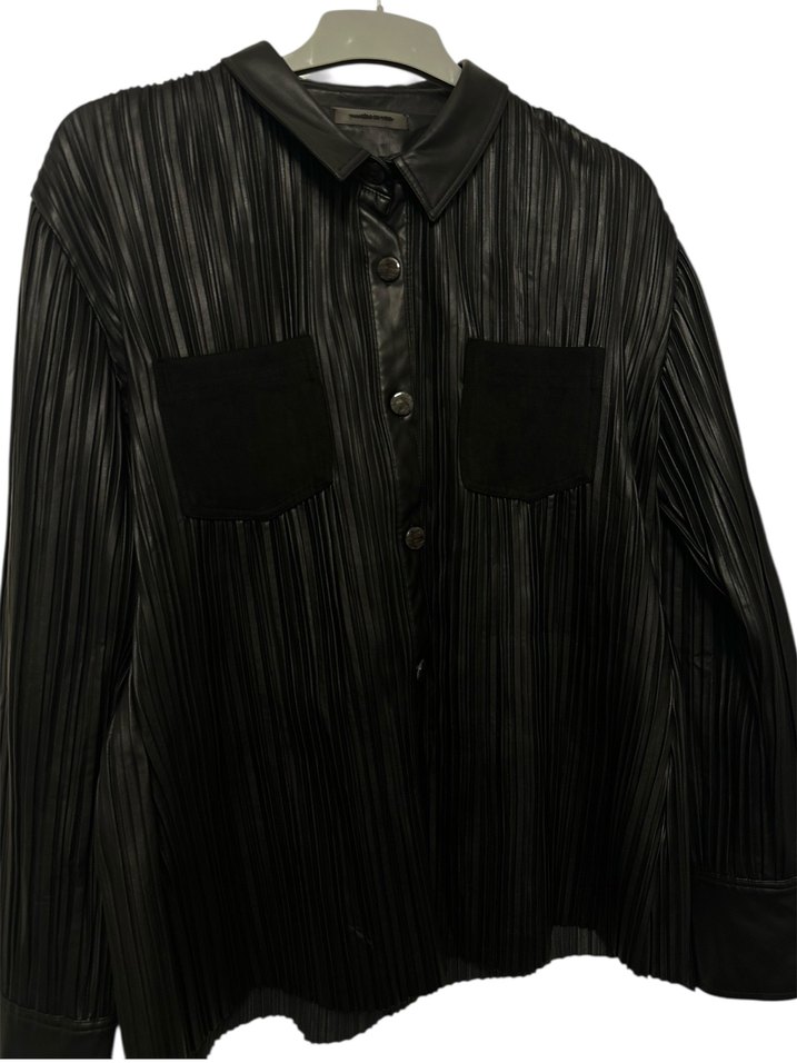 Kadın Pilili Siyah Deri Ceket-Gömlel