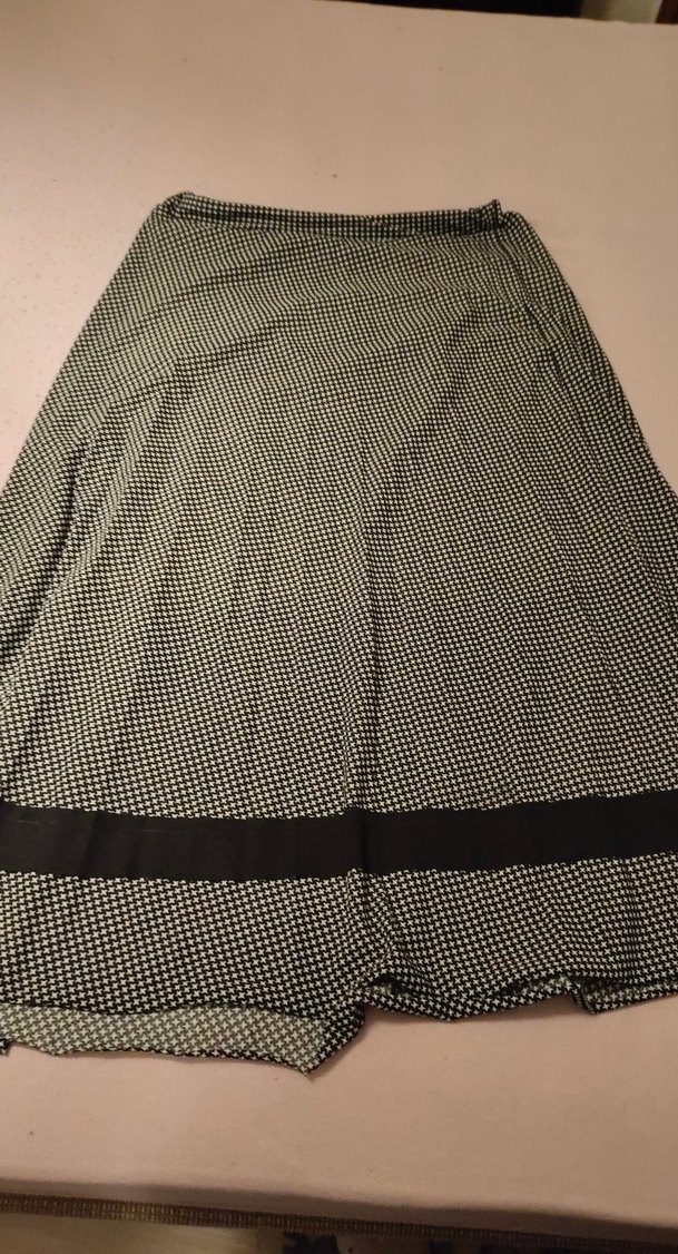Kadınlar için pilili, siyah bant detaylı uzun etek. Sentetik kumaştan üretilmiş, günlük kullanıma uygun çağdaş Paris tarzında. hiçbir defosu yoktur alana hayırlı olsun
