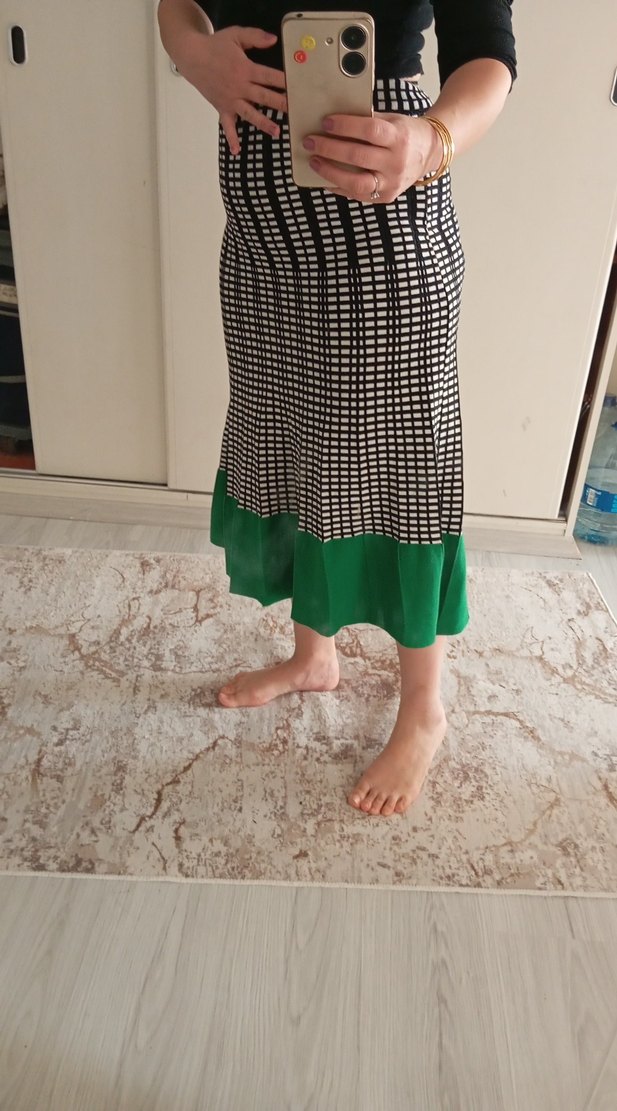 Kadınlar için pilili, bol kesim uzun etek, koyu yeşil ekose desenli ve sentetik kumaştan, günlük kullanım için uygundur. çol guzell
