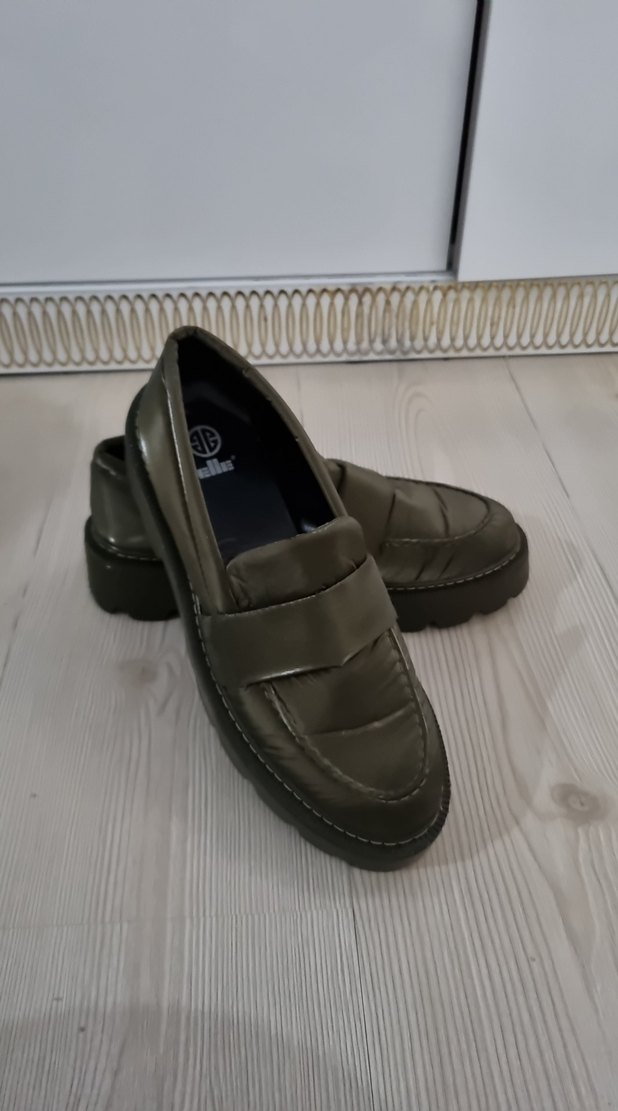 Kadın Pliseli HAKİ Blok Topuklu Loafer ELLE