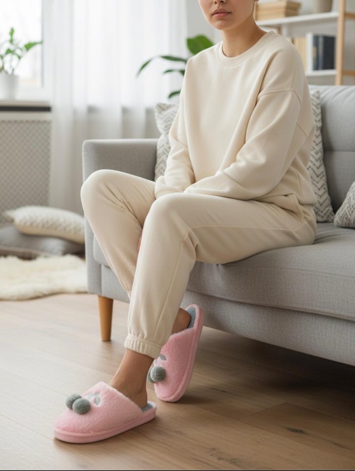 Kadın Pofuduk Ev Terliği Beyaz Stiletto Topuklu