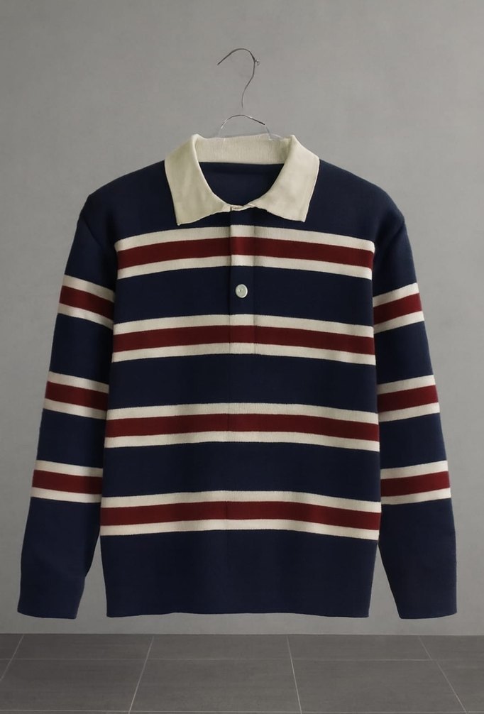 KADIN POLO YAKA ÇİZGİLİ TRİKO KAZAK