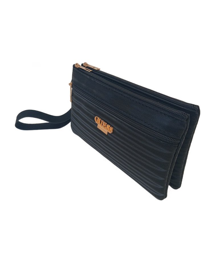 Siyah 3 bölmeli fermurlı kadın portföy çanta, minimal ve klasik şıklığı günlük sokak stiline taşır. Bilek askısı bulunur.
