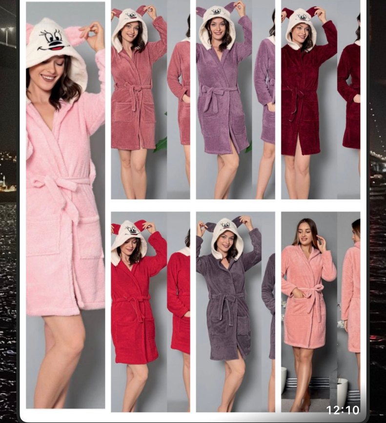 Kadınlar için tasarlanmış, uzun kollu, midi boy ve bol kesim pudra pembe sabahlık. Kapüşonlu ve kemerli, rahat bir kullanım sunar. ️