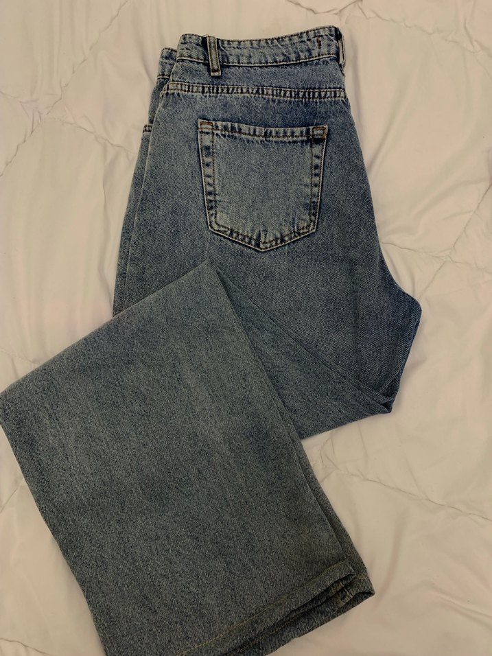 Kadınlar için tasarlanmış, gri mavi tonlarında, rahat kesim kot pantolon. Günlük sokak stiline uygun, zahmetsiz şıklık sunar.