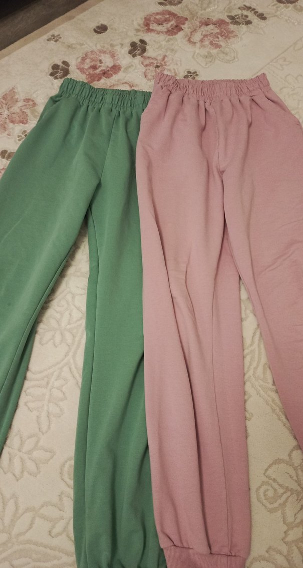Kadınlar için pastel pembe ve yeşil renklerde, rahat kesim midi kumaş pantolonlar. Düz ve yumuşak sentetik kumaştan üretilmiş, günlük kullanıma uygun rahat ve şık tarz sunar.
