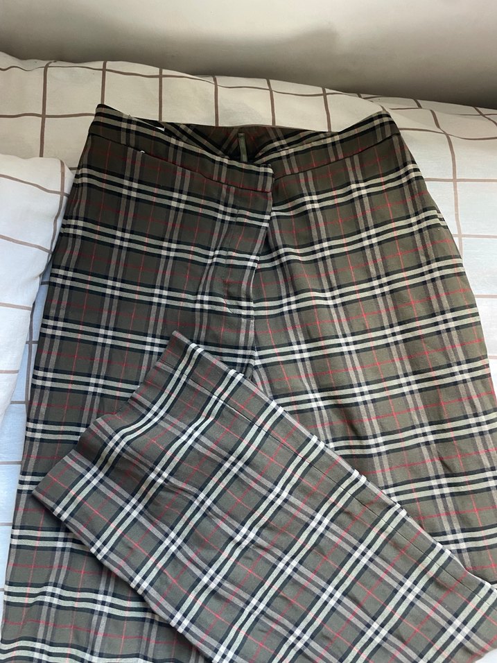 Kadınlar için regular fit,kumaş pantolon. Ekose desenli, pileli ve gri yeşil tonlarında, sokak stili için uygundur. 38-40 bedene uygun