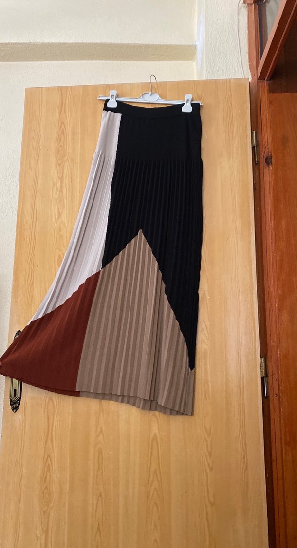 Kadın Renk Bloklu Pilili Uzun Etek