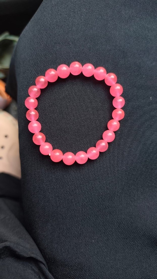 Kadınlar için renkli pembe boncuklardan oluşan, sade ve minimalist tarzda günlük kullanıma uygun bileklik.