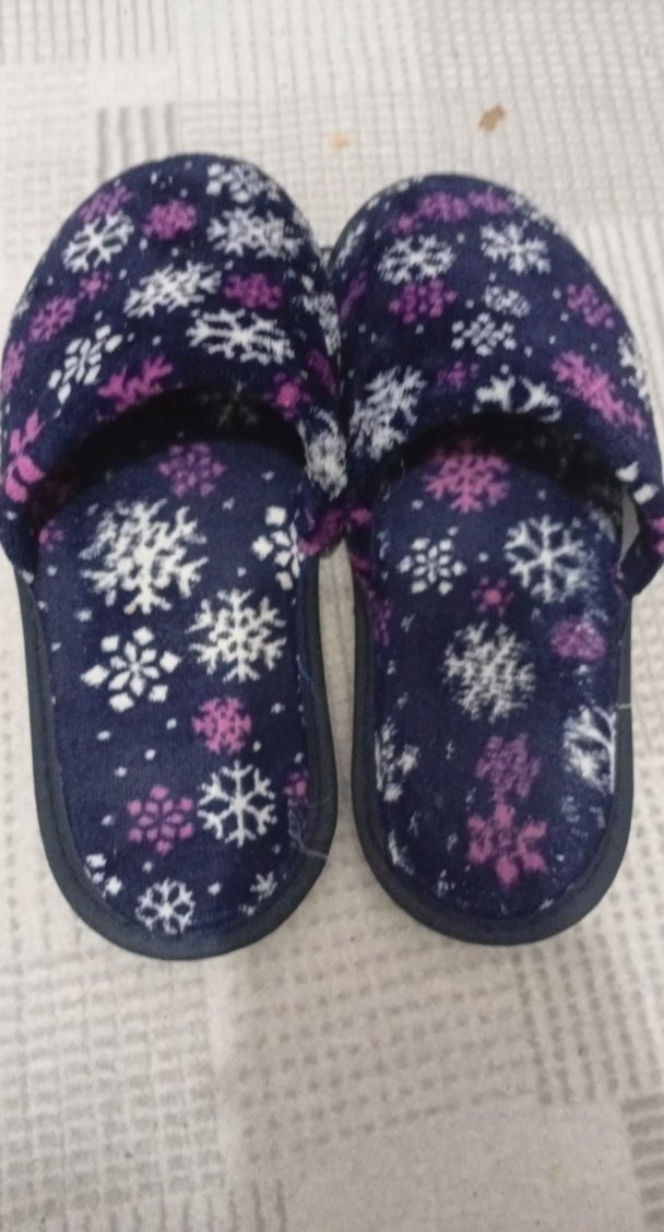 Renkli kadife kadın ev terliği, yumuşak ve sıcak kumaş, düz tabanlı, mor tonlarında batik desenlidir. Günlük kullanım için uygundur. Hiç kullanılmadı.