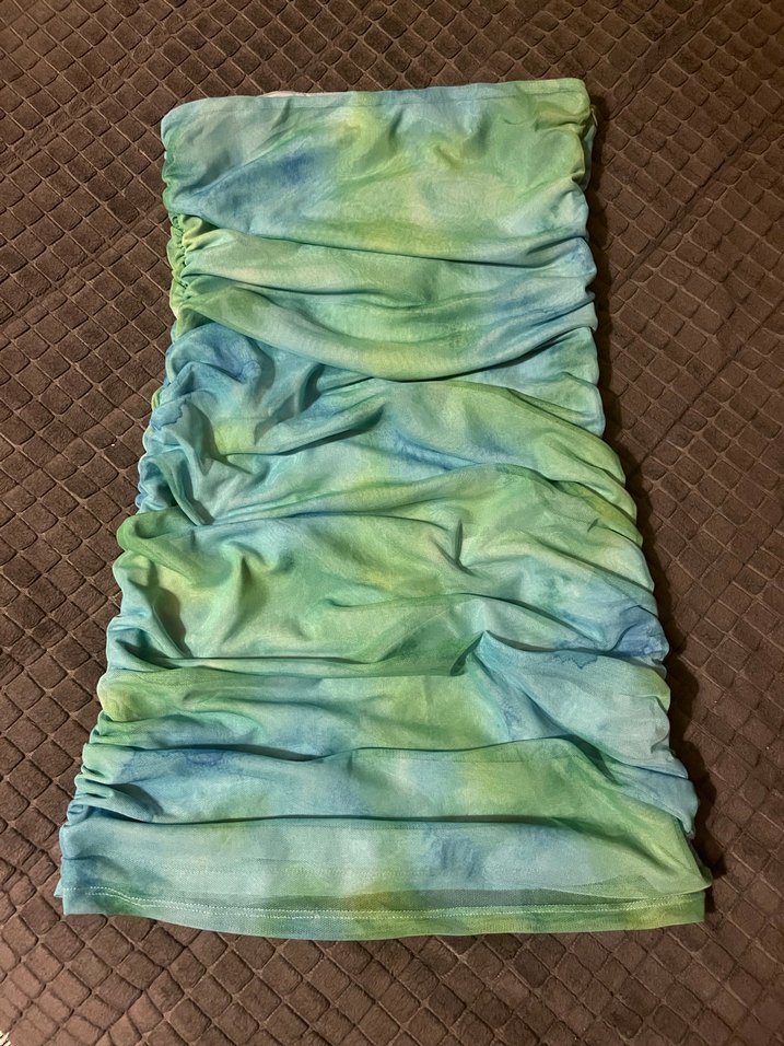 Pastel renkli kadın elbise kenarları kendiliğinden büzgülü