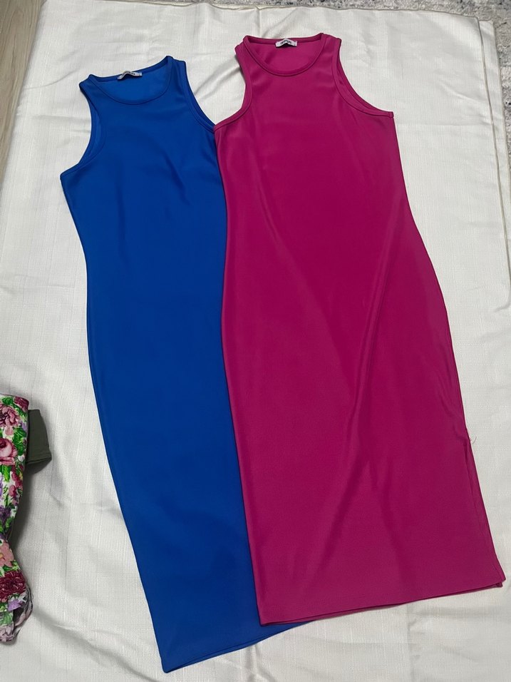 Bu kolsuz, vücuda oturan kalem elbiseler canlı mavi ve pembe renklerde. Askısız yakaya ve uzun boyuta sahip, yumuşak sentetik kumaştan üretilmiştir, günlük sokak stili için uygundur. İkisi 350 Teki 200