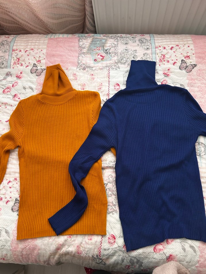 Uzun kollu, balıkçı yakalı, renkli triko kazaklar. Rahat ve şık, günlük kullanım için idealdir. (İKİSİ BERABER SATILIK)