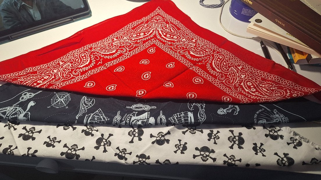 Kırmızı, siyah ve beyaz renklerde, retro ve karşı kültür desenlerine sahip, dökümlü tekstil vintage tarzı renkli kadın şalları.