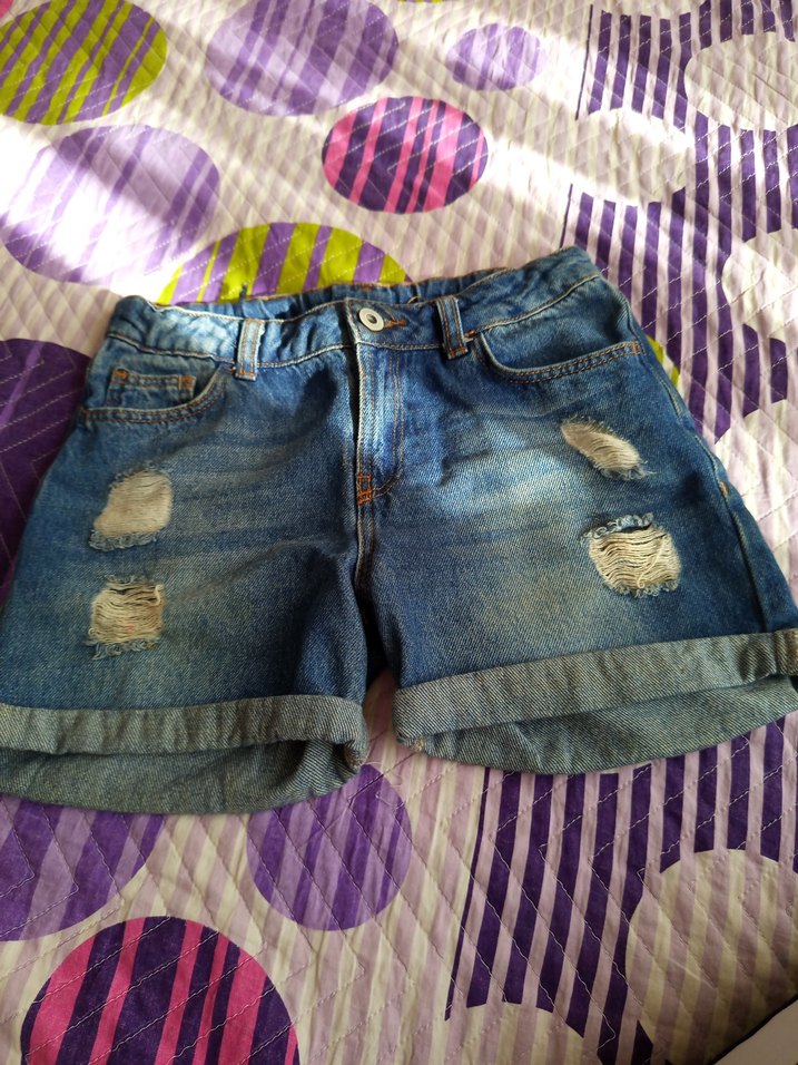 Renkli tie-dye desenli, bol kesim, yırtık detaylı kız çocuk denim mini şort, günlük rahat kullanım için uygundur.