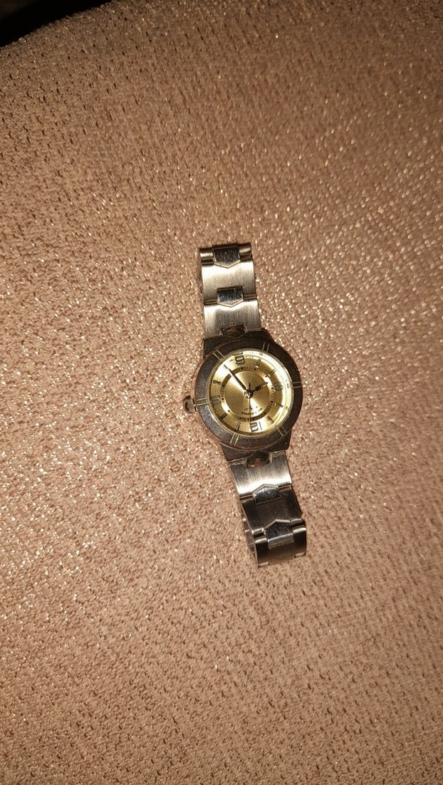 pili bitmiş kadran ve gri metal tokalı kayışa sahip kadın saati, rahat ve karşı kültür tarzını yansıtıyor. ⌚