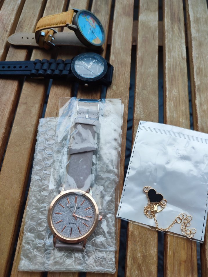 Kadın saat, yanındaki bileklik hediyedir, sıfır üründür. Üstteki iki adet hasarlıdır fiyata dahil değildir fazladan gönderilecektir.