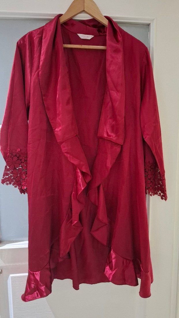 Artık kullanmadığım için satıyorum.. herhangi bir sorunu ve defosu yoktur.. L bedendir saten kumaştır..