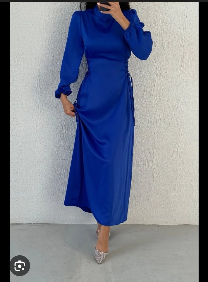 Kadın saks mavi tesettür abiye çok iyi durumda 1 kez giyildi 3 saatliğine