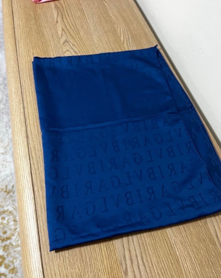 Kadınlar için koyu mavi renkte, yumuşak sentetik kumaştan yapılmış, drapeli tasarıma ve hafif marka yazısına sahip sade şal. Kullanmadığım için satıyorum uç kısmındaki dikişleri görselde görüldüğü gibidir almak isteyene yardımcı olurum