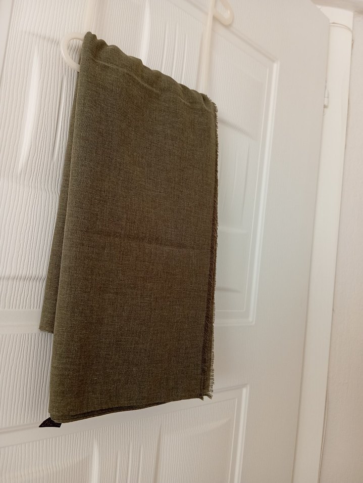 kadın şal, dökümlü tasarımıyla minimalist ve çağdaş bir görünüm sunar.