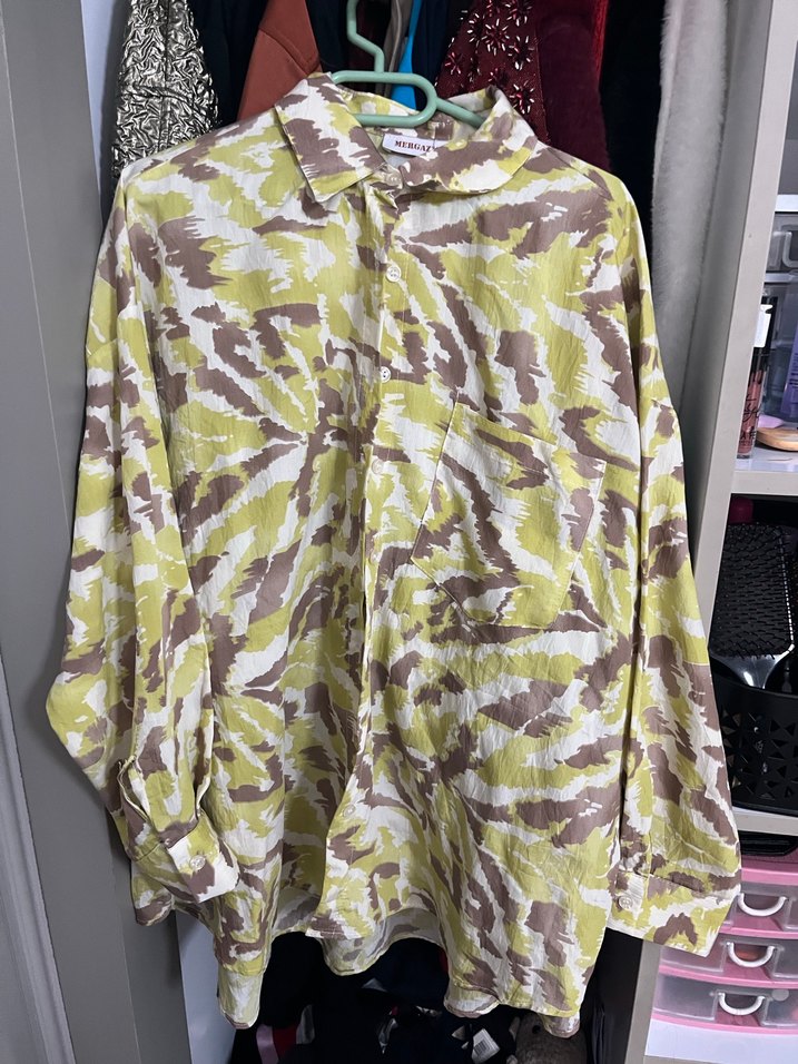 Kadın Salaş Kahverengi Yeşil Beyaz Gömlek