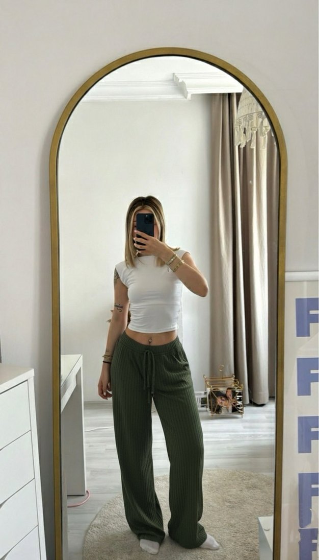 Kadın Salaş Kesim Haki Pantolon