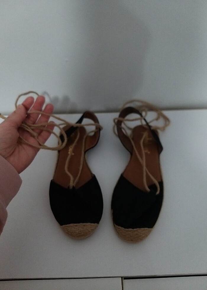 siyah hasir süet nubuk bağcıklı espadril hiç kullanılmadı 37 numara