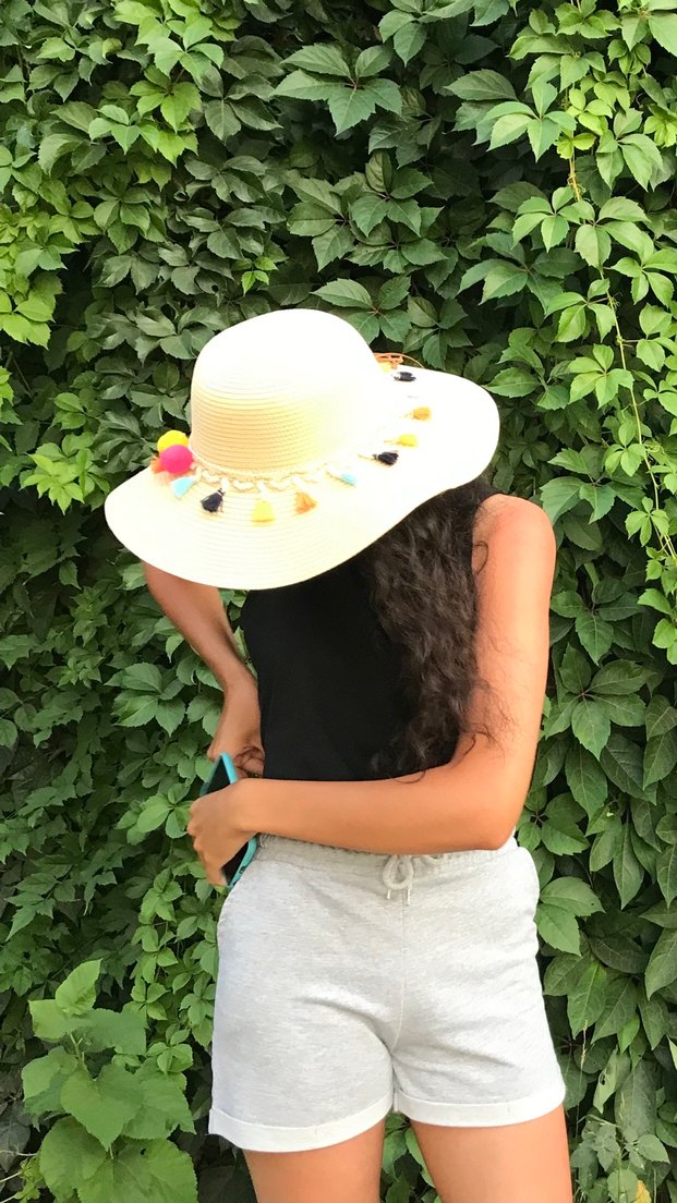 Çok renkli püsküllerle süslenmiş, hafif renkli pamuklu şapka. Bohem tarzı yansıtan retro ve hippie esintili bir aksesuar.