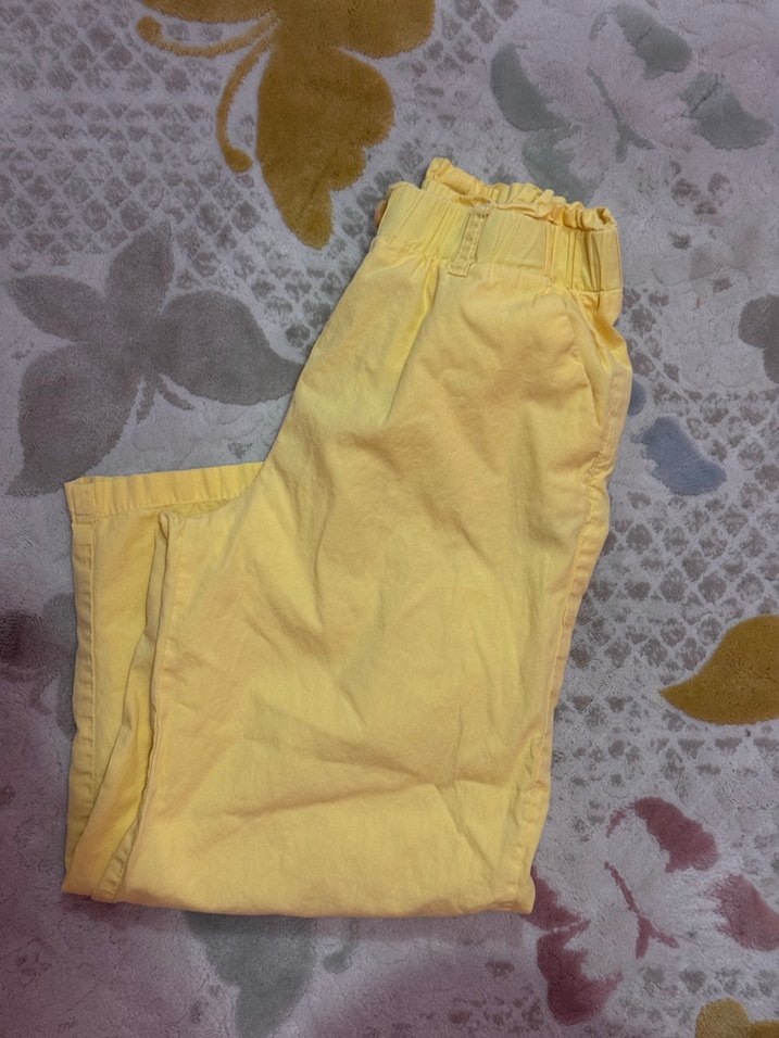 Kadınlar için sarı keten kumaştan, piliseli ve midi boyda, rahat kesim pantolon. Günlük kullanım için pastel tonlarda şık ve rahat bir seçenek.