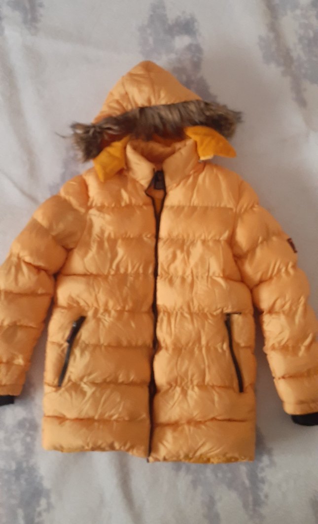 sarı kışlık mont, kürk detaylı ve fitted midi boydadır. Uzun kollu, yaka tipi kesik yakalı, yumuşak ve sıcak fleece kumaştan yapılmıştır.